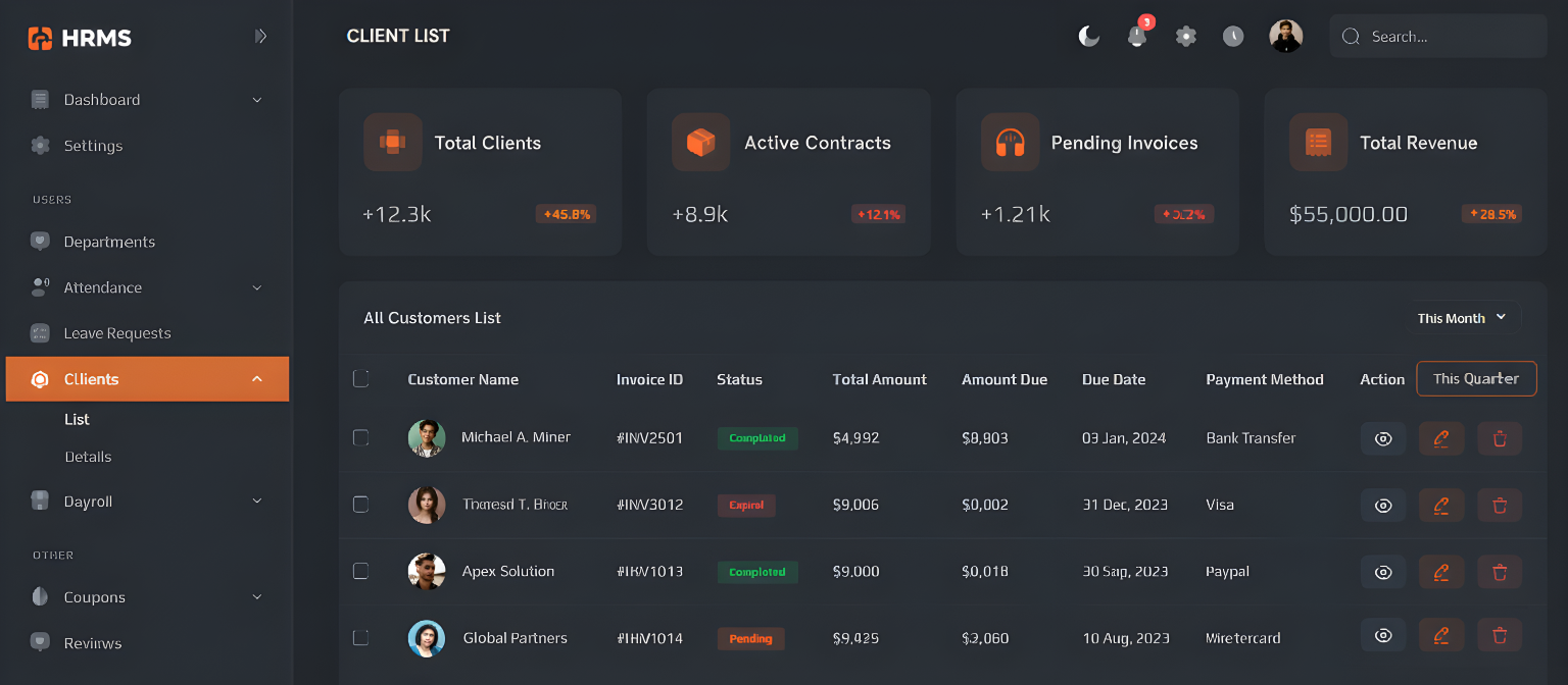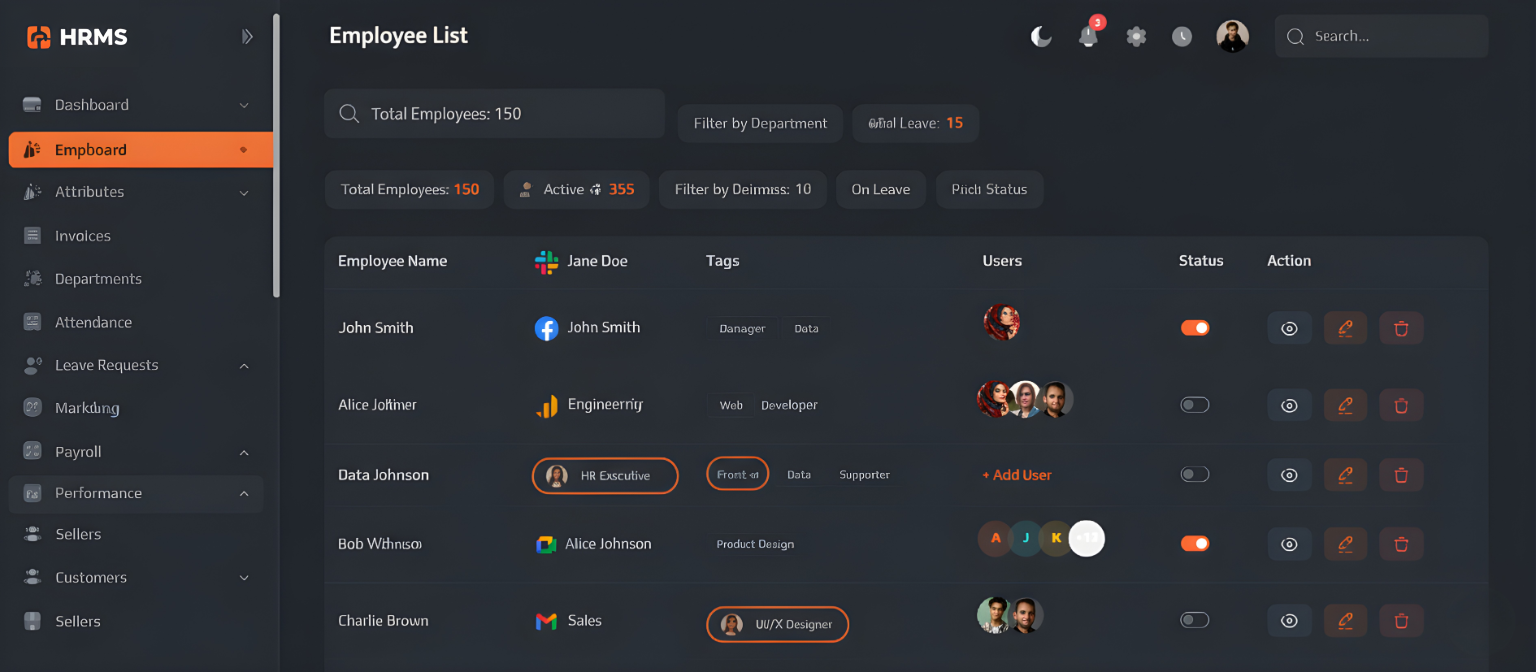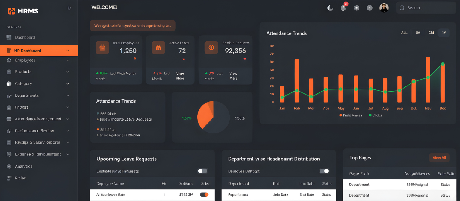 • Manage Attendance & Leave – Track attendance, shifts, and leave requests with smart approvals.